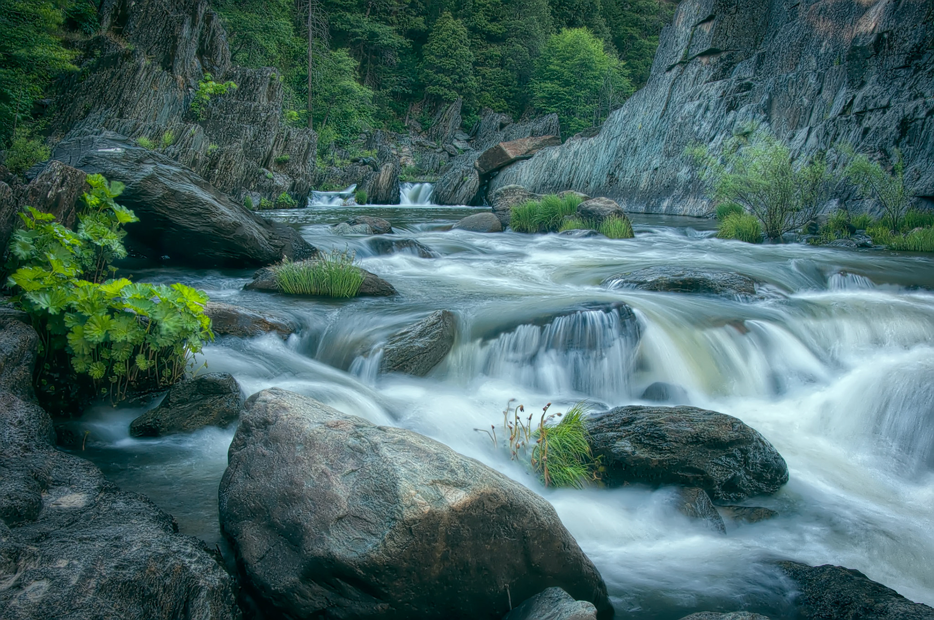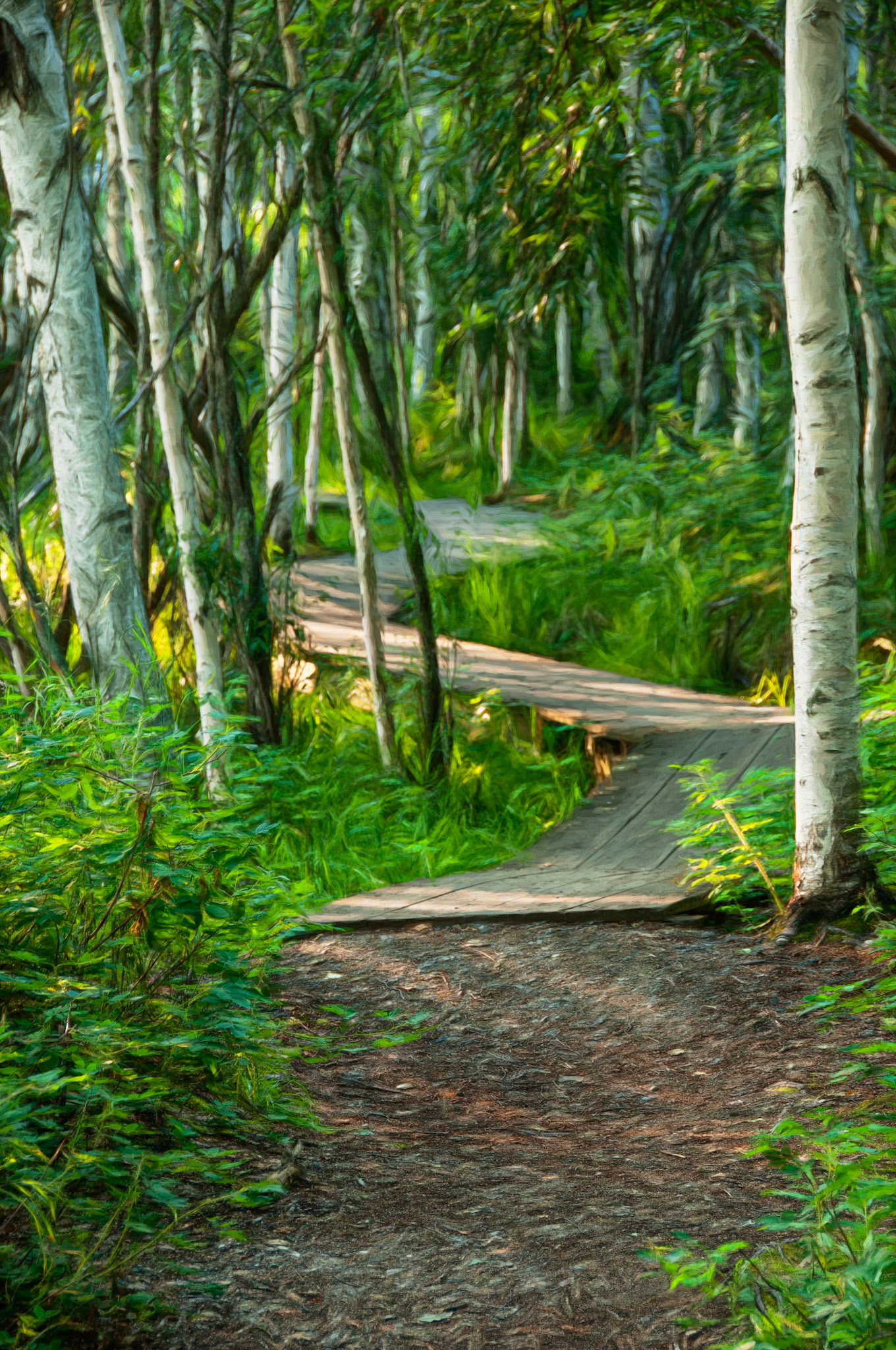 Images of landscapes evoking the dark and moody contrasted by bright and sunny locales.